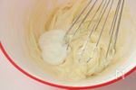 クリームチーズを電子レンジ(600W)に20~30秒かけて柔らかくし、泡立て器でなめらかになるまで混ぜる。グラニュー糖を加えてさらにすり混ぜる。水切りしたヨーグルトを2回に分けて加え、そのつどよく混ぜる。 | |