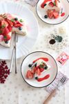 お好みで、フレッシュなイチゴソースを添えてもO.K. イチゴ100gとグラニュー糖10gをミキサーにかければ完成です。 |