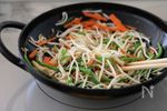 にんじんに火が通ったら、もやし、鶏がらスープのもとを加えて炒める。 | |