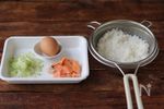 長ネギは小口切りにする。塩鮭は焼いて骨と皮をのぞく。ごはんはさっと洗って粘り気をとり、ザルにあげて水気を切る。 (*ごはんの粘り気をとることでさらっと仕上がります。) |