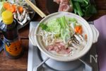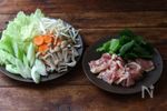 白菜は一口大、にんじんは輪切り、長ネギは斜め切り、小松菜は2~3㎝幅に切る。しめじは石付きをとって小房に分ける。鶏もも肉は一口大に切る。 | |