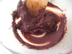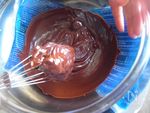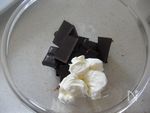 クリームチーズとチョコレートを耐熱ボウルに入れて500Wのレンジで2回にわたり蓋をして30秒、30秒かける。 | |