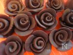 チョコレートでバラの花びらの形に作る。 工程7の花びらを芯になる部分につけて薔薇の形を作っていきます。 |