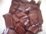 レンジ用の蓋をしますが無い場合はラップをかけて下さい。そのつどチョコレートの様子を見て下さい。 チョコの大きさや暑さにもよるのですが、菓子用チョコレートチップの場合や細かいチョコの場合はレンジ1回の場合もあります。 レンジにかけるとチョコはこんな感じで溶けます。硬いようでしたらもう一度30秒かける。 |