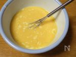 ボウルに卵を割りほぐし、顆粒コンソメ・豆乳(または牛乳)・マヨネーズを入れてよく混ぜ合わせます。 | |