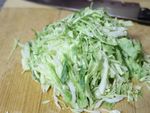 キャベツを千切りにします。 じゃがいもと甘とうがらしは細かくカットします。 |