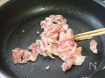 フライパンにサラダ油を入れて加熱し、豚こま切れ肉を炒める | |