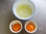「1」を入れて卵黄をのせる。(出来るだけ中心が良いです) | |