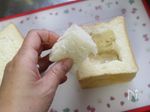 中心のパンを手でとる(※くりぬき過ぎないように注意しましょう) | |