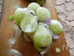 食パンを麺棒でうすく伸ばす ぶどうは洗ってから半分に切る |
