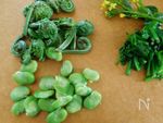 Aの野菜はそれぞれさっとゆでてから水によくさらし水気を切り そら豆は外皮をむき アスパラ菜は2cm長さに切る | |