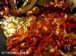 ドライトマトは ニンニク 赤唐辛子とともにざくっと刻み ひたひたのオリーブオイルに漬け込み一晩置く。 |