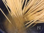 お湯2ℓを沸かし塩を20g入れパスタを茹でる。 | |