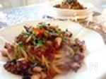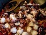 食べやすい大きさに切った茹でタコと白ワイン ケッパーを加え よく絡ませ パスタの茹で汁50ccと茹でたスパゲッティを加え和える | |