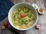 茹でたうどんを器に盛り付け つゆをかけ 残りの明太子をのせ スプラウトをちらす |