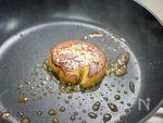 小さめのフライパンにフォアグラを入れて中火で片面 1分ほど焼いたらひっくり返して30秒ほど焼きます |