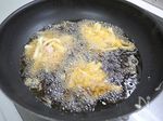 170度の揚げ油にゆっくりと流し入れて箸で形を 整えながら1分30秒ほど揚げたら出来上がりです |