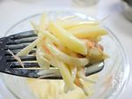 じゃがいもは5mm角5㎝長さの棒切りにし水にさらします | |