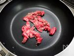 熱したフライパンにサラダ油を小さじ1入れて牛肉を 中火で炒めます |