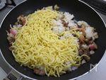 ご飯をパパッと炒めたら焼きそば麺を加えます | |