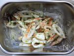 斜めに切った竹輪を①に加え混ぜ合わせます | |