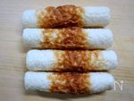 竹輪は斜めに5mm幅に切ります(切る前の姿でございます) | |