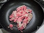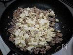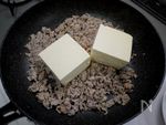 挽き肉に火が通れば鷹の爪(輪切り)と豆腐を加えます | |
