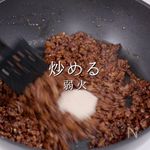 「ザージャンの完成」 中華の基礎料理「肉味噌」の完成!担々麺に使ったり、ご飯にかけたりもできるよ! |