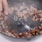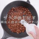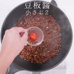 「炒める」 豆板醤も油で炒めると味に深みが出るので、炒めるのは大事よ! |