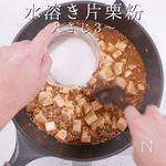 「水溶き片栗粉は回し入れない」 具材を混ぜながら真ん中に垂らしていくよ!動画で見てもらえるとわかりやすいかと。 |