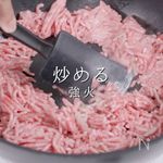 「豚ひき肉」 鍋をガッツリ温めたら肉を投入! |