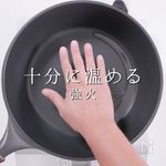 「温める」 肉を入れた時にジュ〜ってなるようにね! |