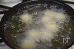 ミニサイズのボウル状に形成し、中温の揚げ油で転がしながら揚げる |