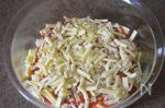 上に①のトマトソースをかけ、溶けるチーズを乗せる 180℃に熱したオーブンで20分焼く。 |