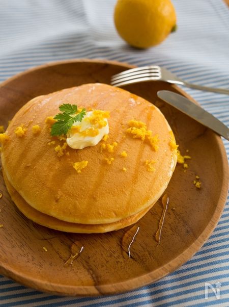ホットケーキにも、すりおろしたレモンの皮とハチミツをプラス!