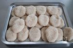 肉だねを大さじ1程度取り、薄く小さな小判形にする。パン粉をつける。 | |