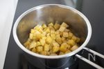 ●合わせて煮る 鍋に無塩バターを入れて弱火で溶かし、1とA メープルシロップ 大さじ1、砂糖 大さじ1/2 を入れて混ぜる。中火で煮立ってきたら蓋をして弱火にし、10分ほど煮る。 |