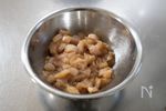 小さめのボウルに鶏胸肉とA 酒 小さじ1、醤油 小さじ1/2、醤油、みりん 各大さじ1/2、鶏ガラスープの素(顆粒) 小さじ2、塩 小さじ1/2弱 を入れてよくもみ込む。 |