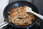 弱めの中火でフライパンを温め、バターを溶かす。ごぼうとにんじんを入れ、バターが馴染むまで炒める。 | |