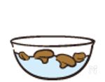 干ししいたけは水で 戻し、みじん切りにする、玉ねぎもみじん切りにする、 豚肉も、細かく刻む。 |