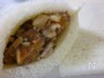 火を止め、干ししいたけの戻し汁でといた片栗粉を全体によく混ぜる、 再度、火をつけ、とりみがつけば、肉あん完成、冷ましておく。 |