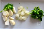 沸騰直前で弱火にして静かに煮る セットの七草を流水で洗う お湯を沸かし、30秒下茹でする ※葉の緑が濃くなった段階でよいので茹で過ぎない |