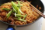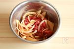 牛こま切れ肉、たまねぎをA コチュジャン 大さじ1/2、ごま油 大さじ1、しょうゆ 大さじ1、酒 大さじ1、砂糖 小さじ1 で10分程漬ける。 |