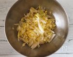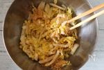 白菜は5mm幅くらいの千切りにし、塩をふって混ぜ5分ほど置いたら、水分をしっかり絞る。 | |