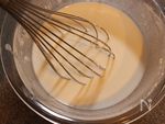 耐熱ボールに上新粉、絹ごし豆腐、砂糖、水を入れ泡だて器でよく混ぜ合わせる。 | |