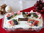 クリームを塗り、いちご、ブルーベリーをトッピングする。 |