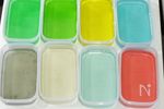 3のタッパにそれぞれ寒天をいれて よく混ぜ、冷蔵庫でしっかり固まるまで冷やす。 |