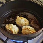 油揚げを裏返し、2を詰め楊枝で止めます。 | |