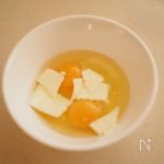 卵を割りほぐし塩コショウで下味をつけます。 チーズを加えて混ぜます。 |
