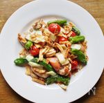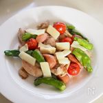 チキンと夏や野菜をソテーし、仕上げにチーズをトッピングました。